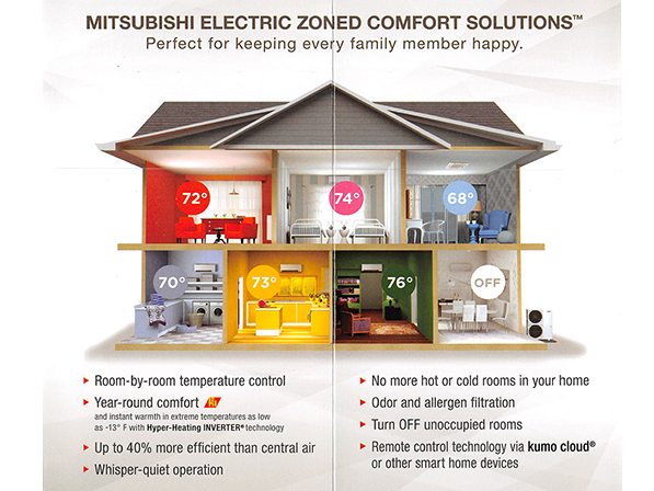 With Mitsubishi Mini Split System, you’ll discover comfort without compromise. Beyond simply regulating the temperature within your space, individual room controls allow you to improve the efficiency of your entire home.